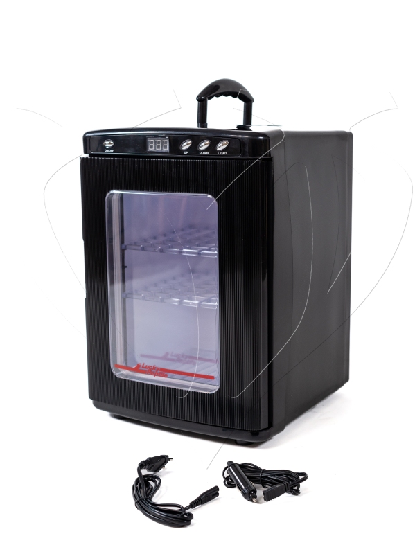 Teplotu lze snadno regulovat v širokém rozmezí od 5 do 60 °C. Velkou výhodou je duální napájení – líheň můžete zapojit do klasické zásuvky na 220 V, nebo využít 12V adaptér do autozapalovače při transportu v terénu.