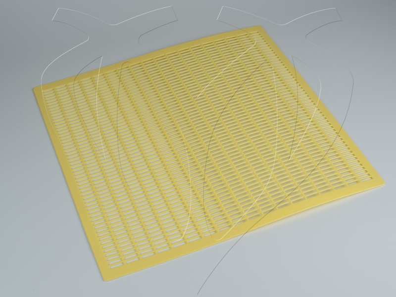 Mřížka o rozměrech 500x500 mm je vyrobena z pružného a lehkého plastu, který se snadno udržuje. Přesné rozestupy otvorů zaručují volný průchod dělnic, zatímco matce spolehlivě brání v průlezu.