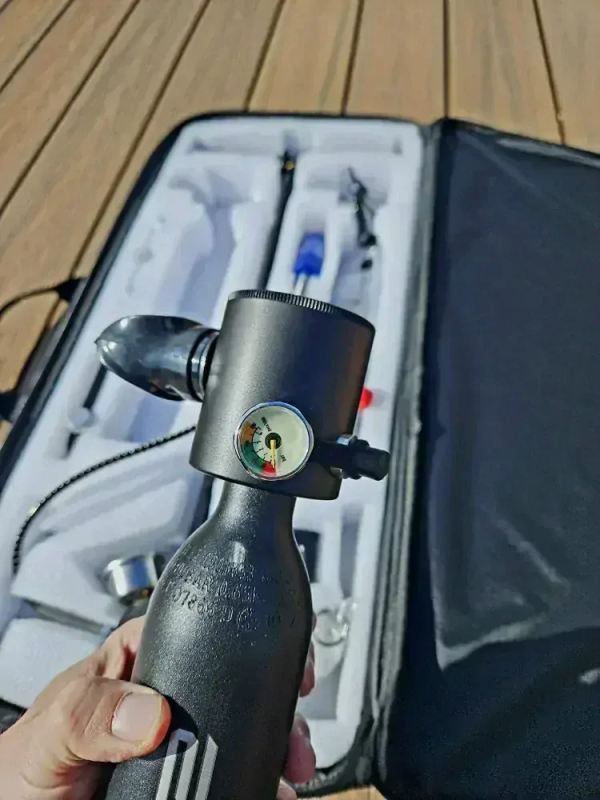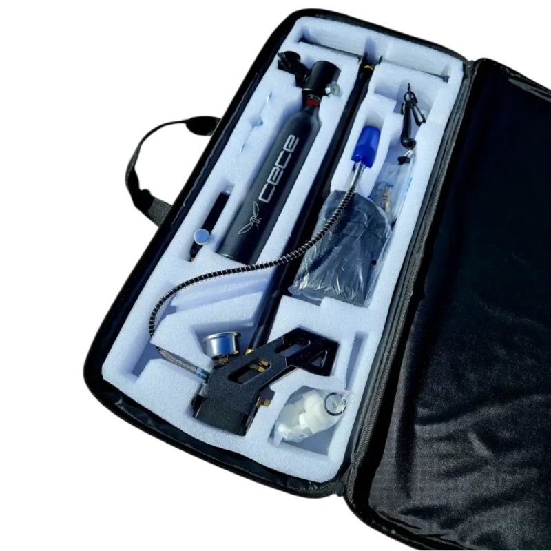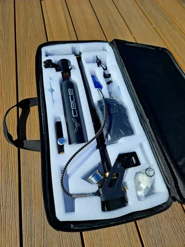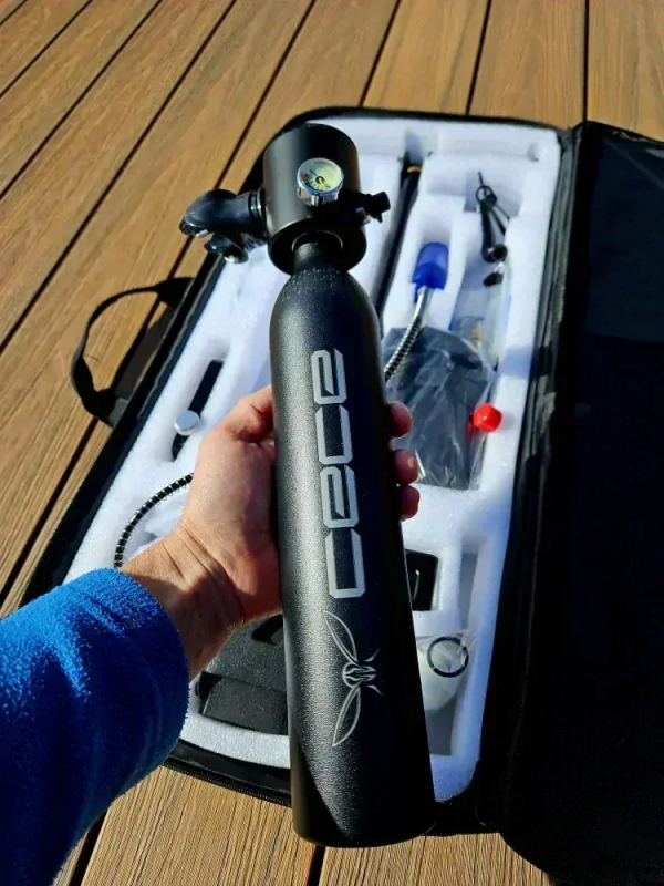 Praktický a kompaktný set CECE je ideálny pre rekreačných potápačov a milovníkov šnorchlovania. Vďaka 0,5-litrovej tlakovej fľaši poskytuje autonómne dýchanie pod vodou počas približne 10 až 11 minút v závislosti od hĺbky ponoru. Súčasťou balenia je aj vysokotlaková ručná pumpa, pomocou ktorej je možné fľašu opakovane plniť bez potreby kompresora. Kompaktné rozmery a nízka hmotnosť umožňujú jednoduché prenášanie a používanie kdekoľvek – na dovolenke, lodi alebo pláži.