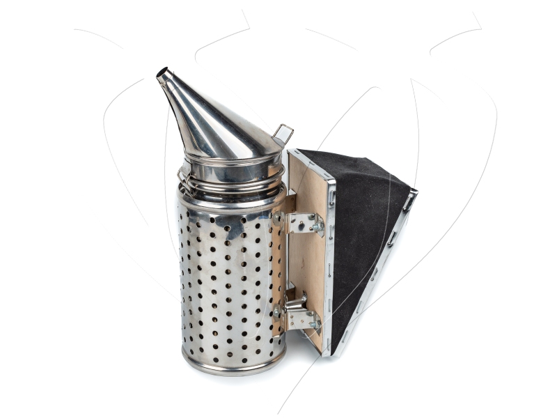 Nerezový dýmák střední velikosti je nepostradatelný nástroj ke zklidnění včel během prohlídek. Po zapálení paliva či knotů uvnitř dýmáku využijete měch k vytlačení kouře, který u včel vyvolá pud sebezáchovy a omezí jejich útočnost.